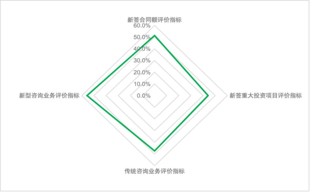 工程咨詢機(jī)構(gòu)經(jīng)營(yíng)狀況分指數(shù)包括本單位新簽合同、本單位新簽重大投資項(xiàng)目、本單位傳統(tǒng)咨詢業(yè)務(wù)項(xiàng)目、本單位新型咨詢業(yè)務(wù)項(xiàng)目4個(gè)具體評(píng)價(jià)指標(biāo)。其中本單位新簽合同評(píng)價(jià)指數(shù)為51.3%,本單位新型咨詢業(yè)務(wù)項(xiàng)目評(píng)價(jià)指數(shù)為55.7%。反映參調(diào)單位三季度業(yè)務(wù)量持續(xù)增加,三季度的業(yè)務(wù)增長(zhǎng)主要以新型咨詢業(yè)務(wù)為主。