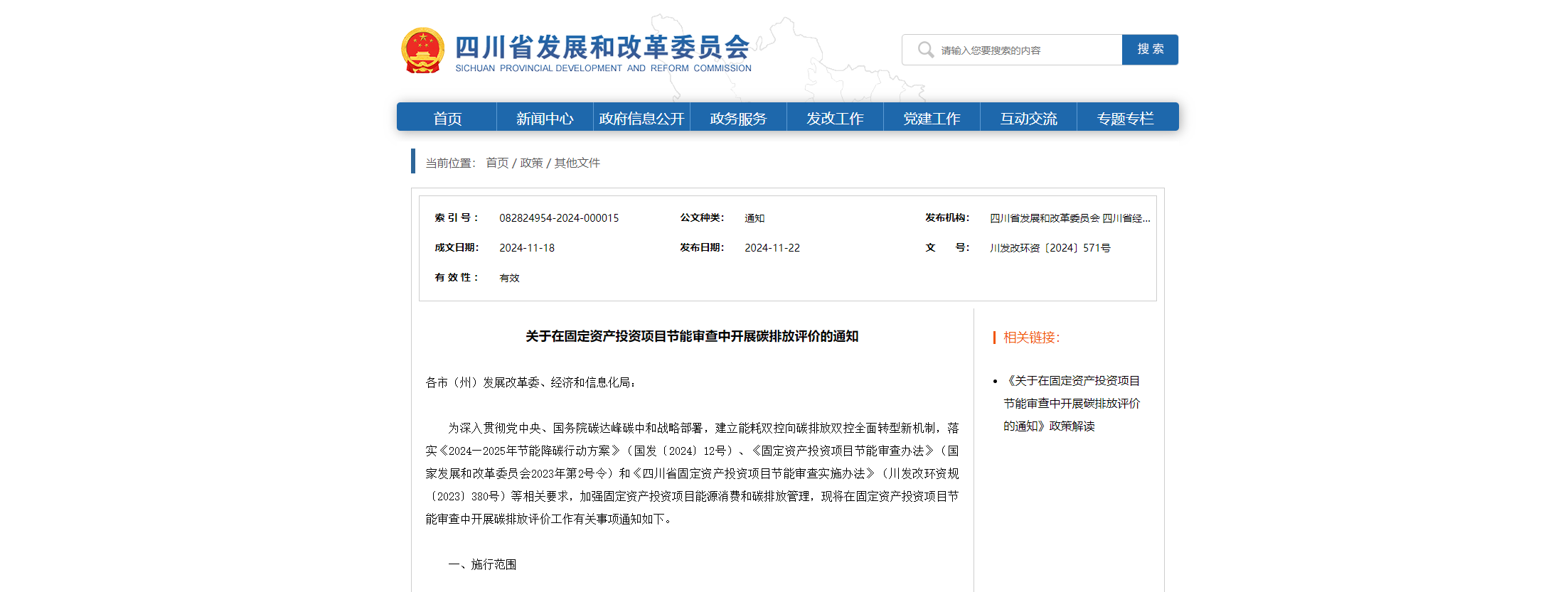 關(guān)于在固定資產(chǎn)投資項目節(jié)能審查中開展碳排放評價的通知 各市(州)發(fā)展改革委、經(jīng)濟(jì)和信息化局:為深入貫徹黨中央、國務(wù)院碳達(dá)峰碳中和戰(zhàn)略部署,建立能耗雙控向碳排放雙控全面轉(zhuǎn)型新機(jī)制,落實《2024—2025年節(jié)能降碳行動方案》(國發(fā)〔2024〕12號)、《固定資產(chǎn)投資項目節(jié)能審查辦法》(國家發(fā)展和改革委員會2023年第2號令)和《四川省固定資產(chǎn)投資項目節(jié)能審查實施辦法》(川發(fā)改環(huán)...